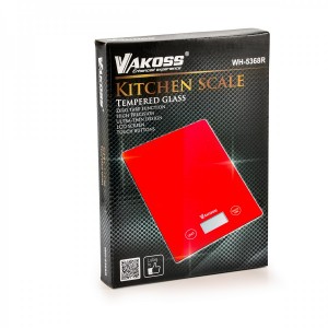 We would like to introduce WH-5368 kitchen scales made from high-quality tempered glass. The scales have an ultra-thin design and (surely) they will help you care about your slim body. They weigh precisely, enabling you to measure even the smallest ingredients with the precision of down to 1 gram, within the range of 0.002 to 5 kg. They have a simple LED touch display, and the results displayed are clear and easy to read. These scales come in two colours, black and red. Do not wait too long, buy WH-5368 scales and plan your precise, multi-ingredient diet today!