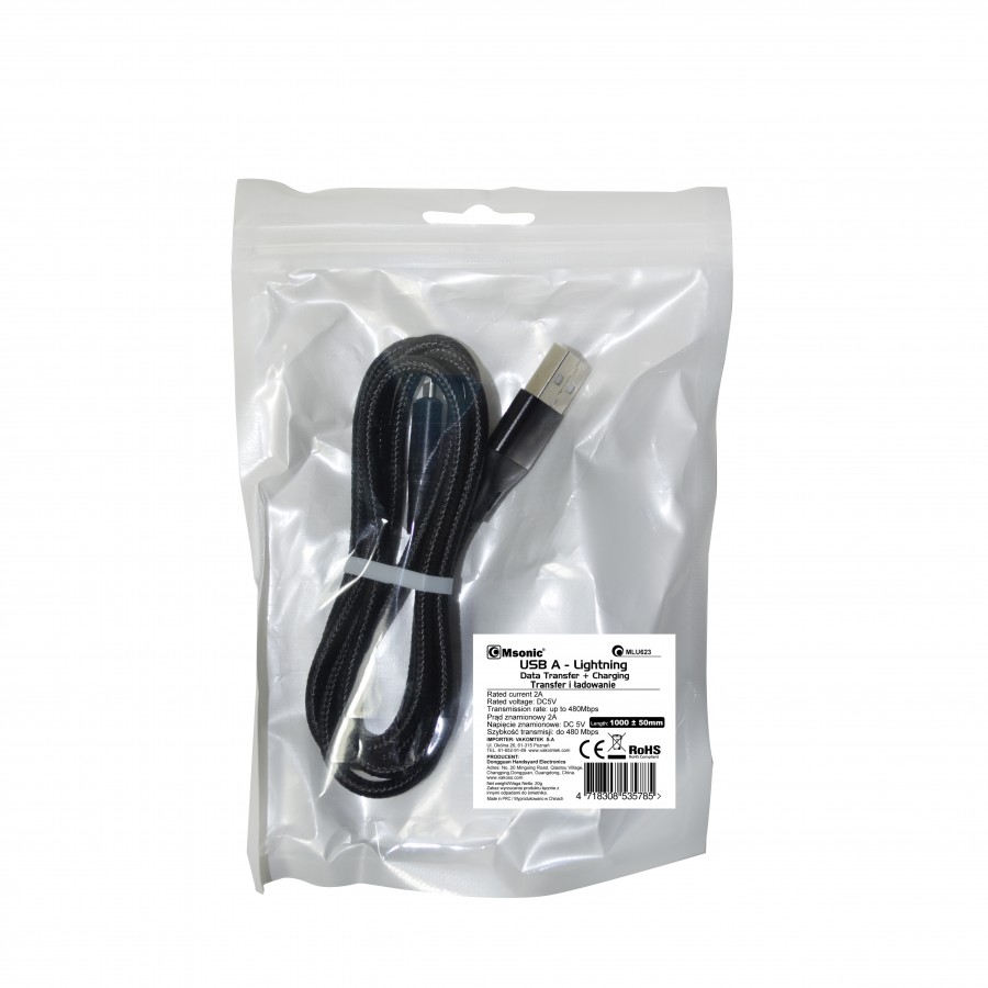 • Kabel Msonic MLU623 o długości 1m posłuży Ci zarówno w czasie ładowania czy przesyłania danych ze smartfona np. na Twój komputer. Kabel ponadto obsługuje szybkie ładowanie o natężeniu 2A, a specjalny nylonowy oplot zwiększa jego żywotność i zapobiega zaplątaniu.