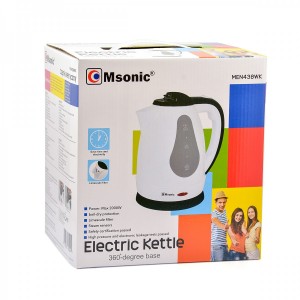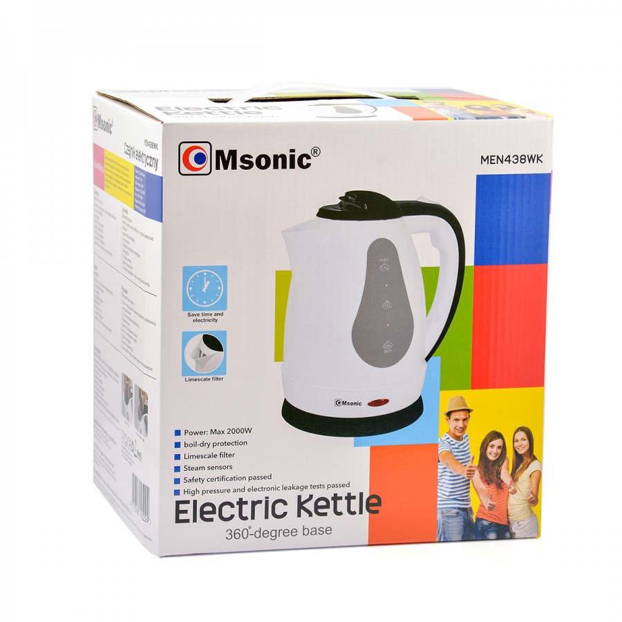 - If you are looking for a cheap but modern and durable kettle - we have something for you! Msonic MEN438WK kettle is made of high quality materials. It is equipped with a steam sensor that automatically switches off after boiling water. It has a convenient construction that allows you to pour water without leaking or splashing. It′s the perfect choice for you.