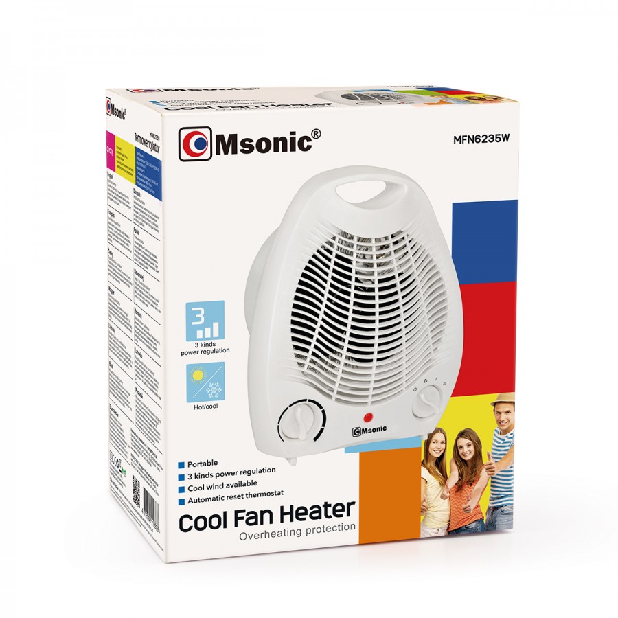 Na upały i chłody mamy niezawodny termowentylator dwufunkcyjny Msonic MFN6235W. Gdy jest Ci gorąco - chłodzi; gdy jest Ci zimno - grzeje. Może działać na dwóch poziomach mocy. Posiada wbudowany termostat, dzięki czemu pozwala na regulację ilości wytwarzanego ciepła w zależności od Twoich potrzeb.