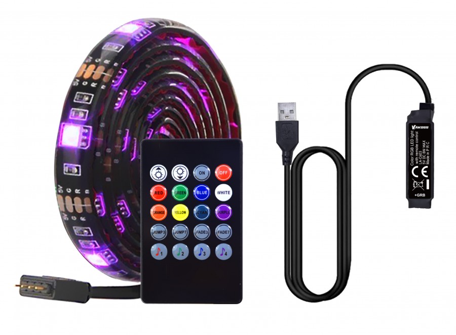 Taśma RGB Vakoss LA-C603 to produkt, który uprzyjemnij wieczorne oglądanie TV lub granie na komputerze. Jest samoprzylepna, dzięki czemu bez problemu można ją zamontować na tylnej stronie telewizora, lub monitora. 3m taśmy wystarczą również na oklejenie biurka gracza. Dzięki zasilaniu USB podłączysz ją do portu telewizora lub ładowarki sieciowe. Taśma LA-C603 została wyposażona w duże diody LED 5050, które w porównaniu z diodami 3528, dają 3 razy większą jasność! Co więcej, emitowane światło współpracuje z dźwiękiem telewizora i pulsuje w rytm muzyki. Do zestawu dołączony jest pilot sterujący, dzięki któremu samemu dobierzesz odpowiedni tryb i moc świecenia.