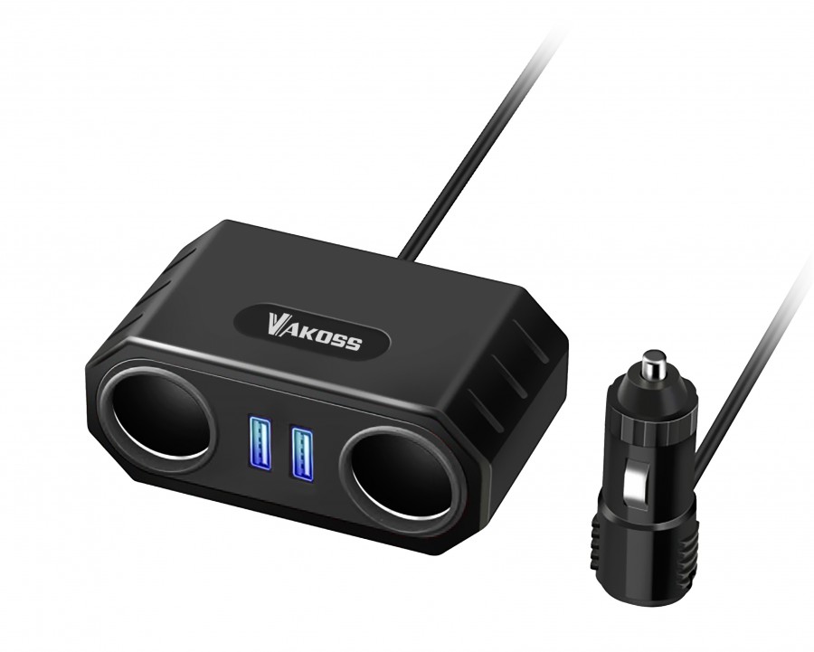 • The VAKOSS® Automobile power converter has 2 high-power power interfaces and 2 USB connectors. It′s suitable for laptops, GPS, MID, smart phones, digital cameras, tablets, Bluetooth headsets, MP3/4, etc.