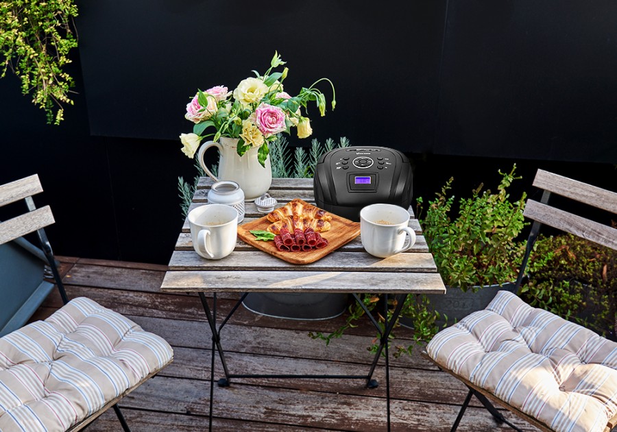 Boombox sprawdzi się idealnie zarówno podczas weekendowych wyjazdów poza miasto, prac domowych jak i wakacyjnych podróży. Wbudowany moduł FM pozwala słuchać ulubionych stacji radiowych. Czytnik kart microSD oraz możliwość podłączenia zewnętrznego dysku USB pozwoli w prosty sposób dostarczyć ulubionej muzyki. Dzięki zasilaniu bateryjnemu można swobodnie słuchać ulubionej muzyki bez użerania się z plątaniną zbędnych kabli.