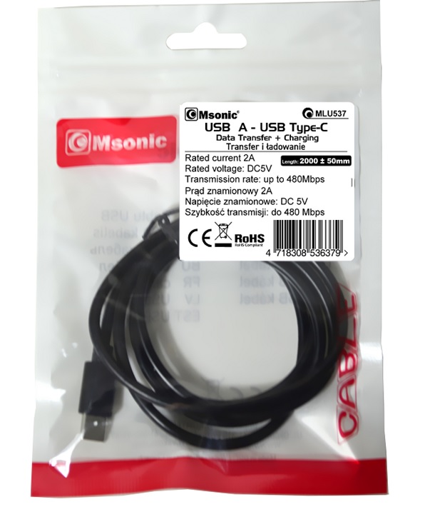 Kabel Msonic MLU537 o długości 2m posłuży Ci zarówno w czasie ładowania czy przesyłania danych ze smartfona np. na komputer. Kabel ponadto obsługuje szybkie ładowanie o natężeniu 2A.