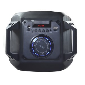 • Bluetooth: 4.0+EDR • Zasięg: do 10m • • Obsługa: A2DP V1.2, HFP V1.6,HSP V1.2 • • Zakres częstotliwości nadajnika Bluetooth:2.402-2.480GHz • Głośniki: 6.5" woofer x2 • Moc wyjściowa: 2400W P.M.P.O./24W(RMS) • • Zakres częstotliwości: 30Hz – 20kHz • Czułość: 85db+/-3db • Karta microSD: do 32GB • USB: USB 2.0/do 32GB;USB 3.0/do 16GB • Odtwarzacz: Mp3/WAV • Funkcja: FM / BT / USB / miroSD / wej. AUX / wej. MIC • Zasilanie: DC 5V • Bateria: 2000mAh 3.7V • Natężenie prądu: 3A MAX • Wymiary produktu: 220x240x530 mm • Waga produktu: 3kg • Akcesoria: mikrofon x1; pilot x1; kabel audio stereo 3.5 x1;kabel USBx1