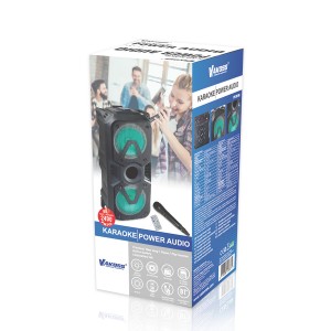 Bezprzewodowy głośnik z wbudowanymi dwoma głośnikami typu woofer 6,5" o mocy 24W sprawdzi się zarówno w warunkach domowych, oraz na imprezach plenerowych. Urządzenie można połączyć bezprzewodowo ze smartfonem dzięki funkcji Bluetooth 4.0+EDR. Dzięki załączonemu do zestawu pilotowi można wygodnie sterować głośnikiem. SP-2931BK posiada również funkcje karaoke oraz efekty świetlne. Urządzenie, dzięki dołączonemu mikrofonowi, można wykorzystywać podczas festynów, eventów etc.