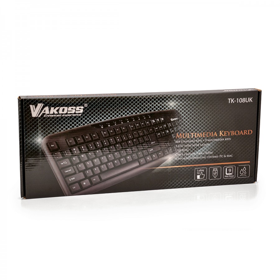 • If you look for a universal and durable keyboard, this one is surely for you. Vakoss TK-108UK keyboard is a comfortable, nice to touch, wired multimedia keyboard resistant to spills. Thanks to its smart looks, low-profile keys, shiny frame and rubberised housing, it will go with any other accessories on your desk. It has 9 extra keys enabling you to operate your multimedia file player conveniently. Its smart look will make it go with other accessories on your desk.