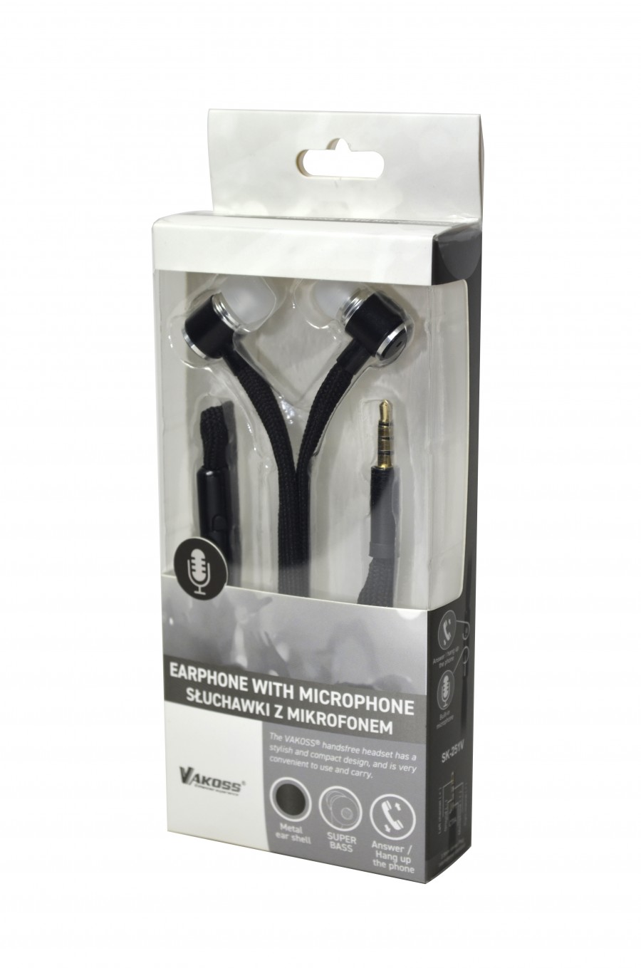- Słuchawki Vakoss SK-251V charakteryzuje przede wszystkim nowoczesny oraz młodzieżowy desing. Kompaktowe słuchawki są pomocne podczas słuchania ulubionego brzmienia w podróży, w pracy, podczas czatów internetowych czy gier na konsoli. Posiadają mikrofon na kablu, który umożliwi również sprawne odbieranie połączeń i wykonywanie rozmów. Słuchawki posiadają kabel w oplocie grubego sznurka, który uniemożliwia jego splątanie. Słuchawki wykończone są metalowymi elementami dousznymi, oraz posiadają przycisk do odbierania i rozłączania rozmów telefonicznych.