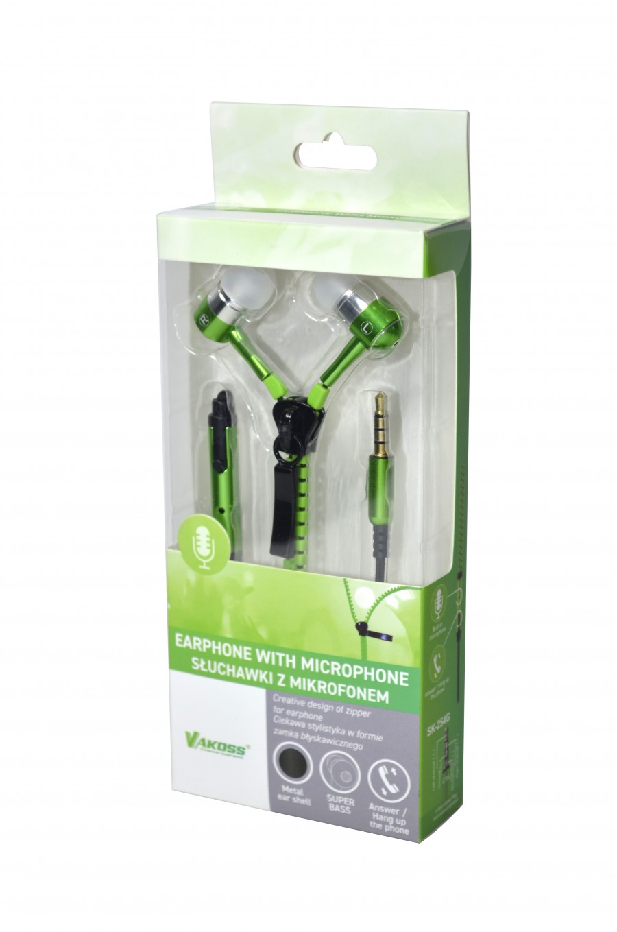 Słuchawki Vakoss SK-254G charakteryzuje przede wszystkim nowoczesny oraz młodzieżowy desing. Kompaktowe słuchawki są pomocne podczas słuchania ulubionego brzmienia w podróży, w pracy, podczas czatów internetowych czy gier na konsoli. Posiadają mikrofon na kablu, który umożliwi również sprawne odbieranie połączeń i wykonywanie rozmów. Słuchawki posiadają kabel wbudowany w zamek błyskawiczny dzięki czemu nie będzie plątał się łatwo. Słuchawki wykończone są metalowymi elementami dousznymi, oraz posiadają przycisk do odbierania i rozłączania rozmów telefonicznych.
