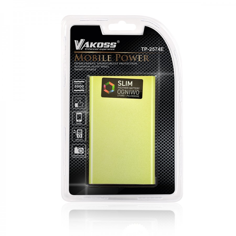 stylish, slender Vakoss TP-2574 powerbank with the capacity of 5000 mAh and the weight of only 130 gram. Without any extra weight, it will enable you to charge your smartphone when you are out. Besides the smartphone, you can charge also other devices with a micro USB port. It is perfect for a smart handbag or the back pocket of your favourite jeans.